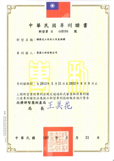 本設施可以充分替代工地內採用合梯或施工架之許多作業,主要目的係提供施工人員於作業平台使用,透過安全的設計、採用高品質組件製造之『調節式工作架』,安全設計荷重為300Kg,成品均經過安全荷重測試。
